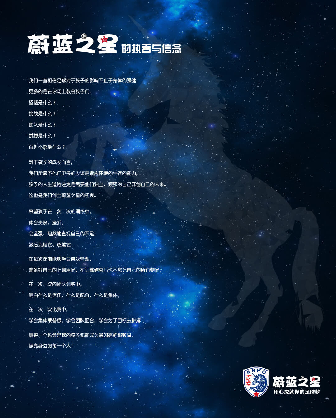 赋予孩子们不单指足球技能,更是人生哲理及信仰的培养
